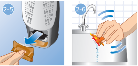 4. Промойте контейнер водой (рис. 2-6, рис. 2-7).