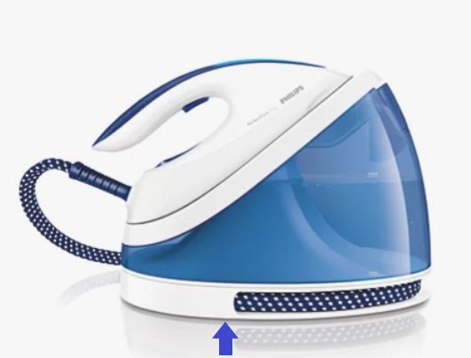 Чтобы найти модель вашего парогенератора Philips, посмотрите инструкцию по эксплуатации или найдите номер модели на стикере в нижней части корпуса, как показано на изображении.