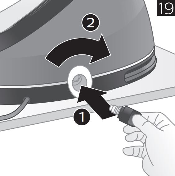 6. Когда из прибора вытечет вся вода, снова установите клапан EASY DE-CALC и надежно закрепите его. (Рис. 19)
