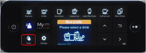 Если в меню вашей кофемашины есть кнопка Clean (Очистка), следуйте указанным ниже инструкциям.