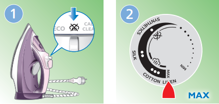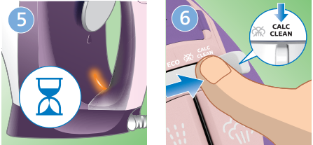 Выполняйте очистку от накипи утюга раз в месяц или когда индикатор Calc Clean (при наличии) подает сигнал:
