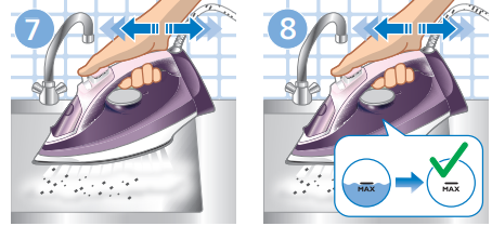 Если в вашем регионе жесткая вода или во время глажения из подошвы утюга поступают частицы накипи, используйте функцию очистки от накипи чаще, не дожидаясь сигнала.